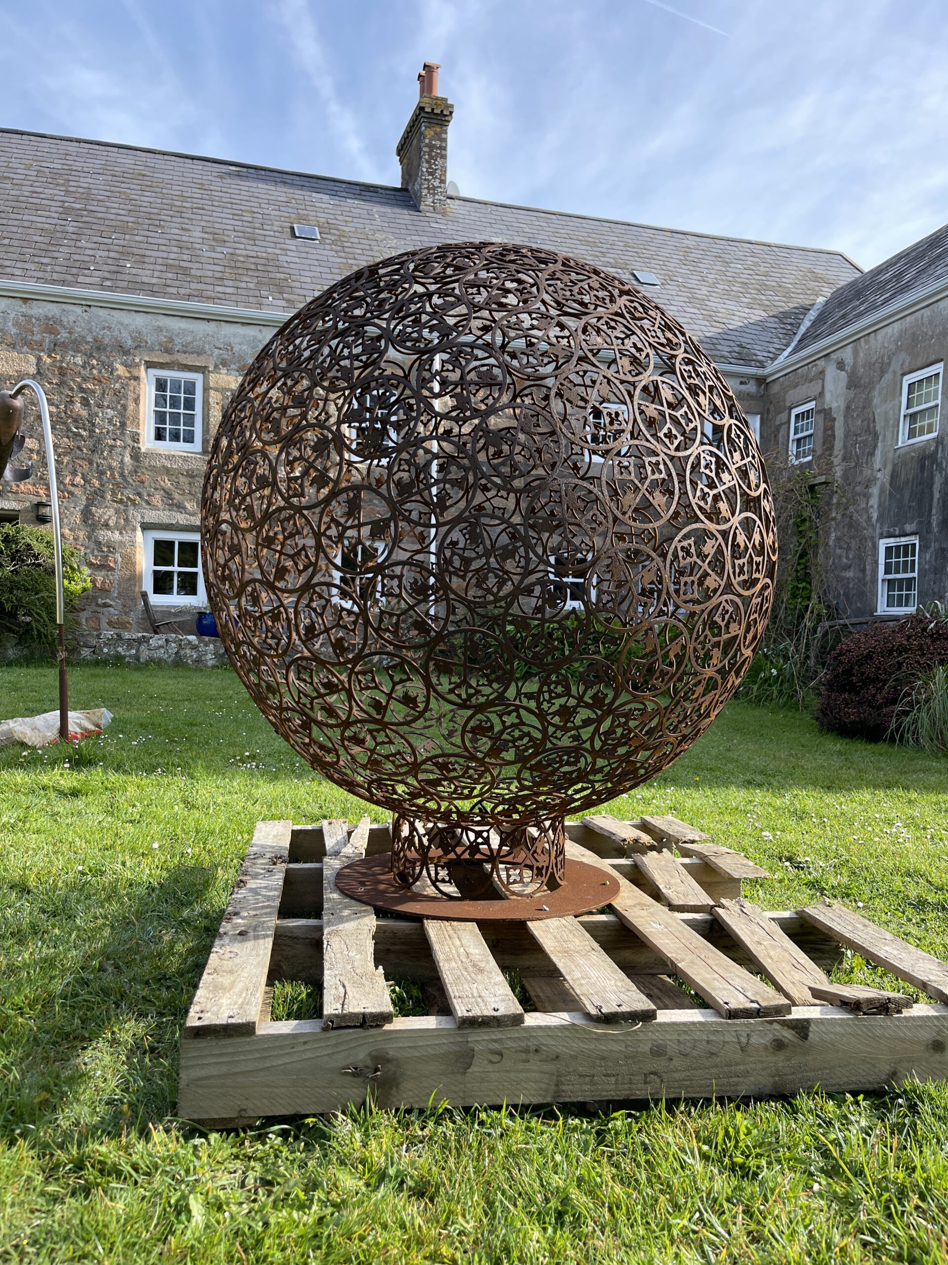 Steel sculpture made from 200 St Peter Crests with cows on the crossed key.
